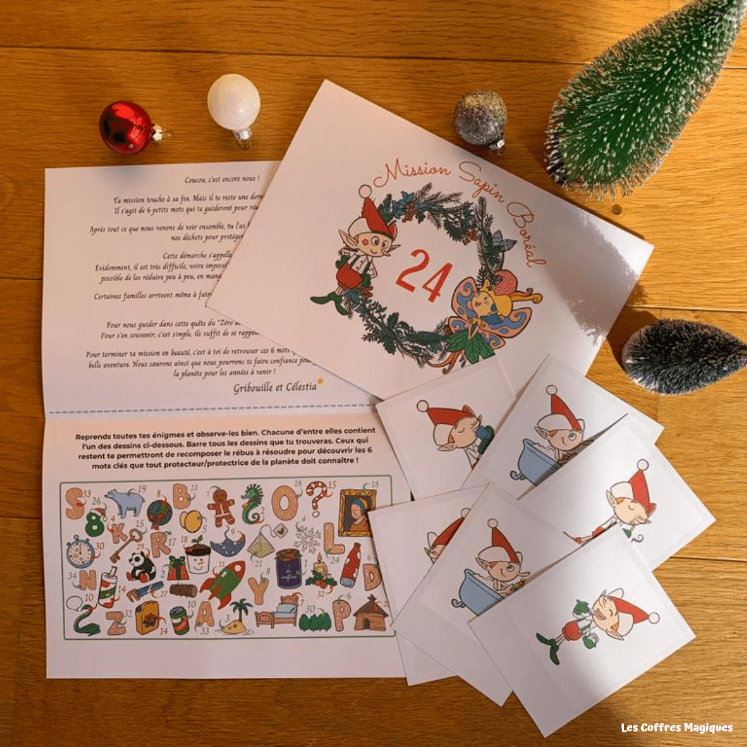 Le Grand Sapin Boréal est en danger, tout comme la fabrication des cadeaux de Noël... Ton enfant devra résoudre des énigmes et relever des défis en lien avec l'écologie pour redonner au Sapin toute sa magie!